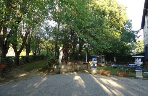 The apartment layed out on ground level is furnished and decorated exclusively with valuable antiques and period paintings. Original frescoes and stucco work are preserved. The apartment comprises the entrance hall, kitchen, bathroom, the bedroom-library with a qeen size bed and fireplace, the room of portraits with a grand piano and the billiard room with exit to a sitting area in the garden.Ideal for two people but it is possible to add two twinsize beds in the big entrance hall.