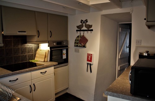 Lounge/dining room: Packed with character, boasting original beamed ceiling and beams from ceiling to floor, original stone shelves and cupboards, wood burning stove, plenty of hanging space for coats, hats, boots and wellies, Smart TV with Freeview Play, DVD player, sound bar with sub woofer and blue tooth speaker, comfy sofas and dining table.