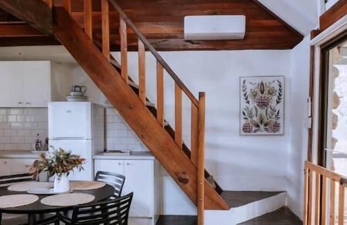 Each cottage has a kitchen, bathroom, and living area and upstairs a main bedroom (king size bed) with an attached toilet, and a second mezzanine bedroom with curtains for privacy and 2 single beds. The cottage is air-conditioned.
