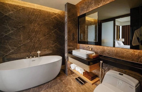 Discover the beauty of Kuala Lumpur from this marvelous 3-bedroom apartment. With 2 king beds and 1 twin bed, guests can enjoy a relaxing stay in this brilliant space. The apartment features 2 bathrooms with a bathtub, bidet, shower, and jetted bathtub. Amenities like a fitness room, WiFi, and AC ensure a comfortable and enjoyable stay my. It's easy to see why you'll be able to unwind at our place.