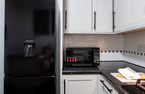 2 Double bed Apartment located in a secure gated development with private parking and elevator access (no stairs!), This stylish home is fully equipped for short or long stays.Enjoy a fully fitted kitchen, Smart TV with Netflix and apps, and super fast Wi-Fi throughout. Ideally situated just 5 minutes from a 24 hour supermarket, close to Wythenshawe Hospital, and within walking distance to the tram stop with direct links to Manchester City Center, M60&M56