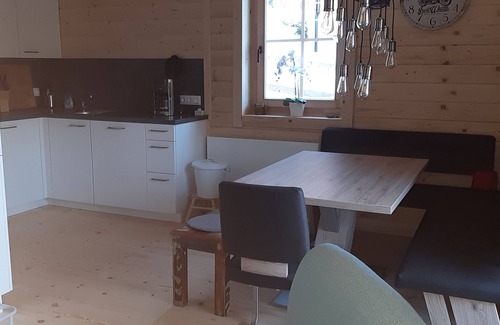 Our Schwabenhütte is a new wooden chalet for 8-10 people directly in the skiing and hiking area. Ski directly from the front door!