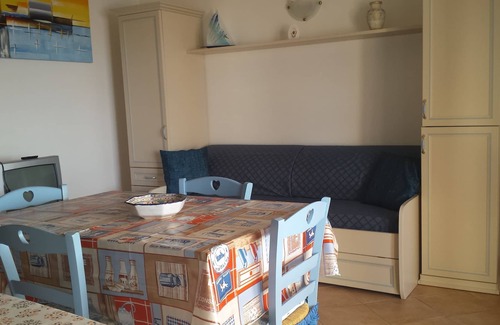 The Portu Maga area lies in the south-west coast of Sardinia. The resort is located only 8 km from the beautiful dunes Piscinas and 13 km from the mining center of Ingurtosu active until 1950 and now declared a world heritage site, but all along the coast is full of picturesque coves and inlets where even in August it is common finding yourself alone. The geographical context is ideal to spend a relaxing holiday among sea, mines and unspoilt nature. L 'apartment is at the center of a small building, located on a hill across from Portu Maga beach which is about 350 ml and can be reached on foot in just 5 minutes walk along the internal stairs of the apartment building. The apartment is very cozy and quiet, has a bedroom with double bed, a bathroom with dressing room, a living room with kitchenette and sofa bed for two people (double or single depending on the total needs 4 beds) and a spacious terrace where you can dine while enjoying a breathtaking view of the sea and the unique and colorful sunsets.