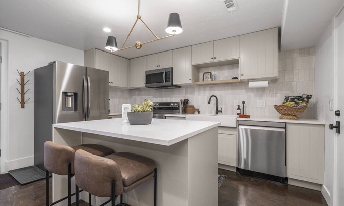 Your perfect getaway in this charming basement suite located in Alpine, Utah, just minutes from world-class ski resorts. This cozy space features a full kitchen equipped with a modern air fryer, perfect for whipping up delicious meals. Unwind in the plush king bed while enjoying your favorite shows on the smart TV. The luxurious walk-in shower adds a touch of comfort after a day on the slopes. Experience the beauty of the mountains while enjoying all the amenities you need for a relaxing stay!