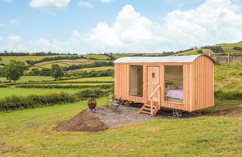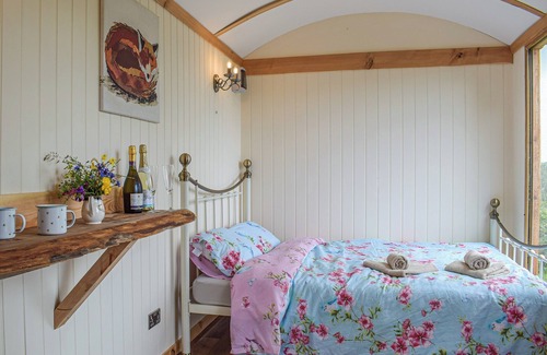 Set with a delightful rural aspect, this property is one of three shepherds huts on site.. 3 steps to entrance.