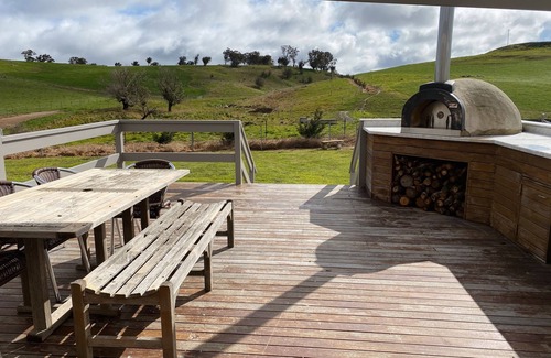 The shearing shed is complete with an outdoor kitchen including a built in bbq and pizza oven. The location offers a large outdoor deck and fire pit area with views to undulating paddocks with well maintained pastures. For the colder nights, the home boasts 2 open fireplaces, as well as air conditioning.