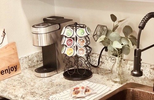 This recently renovated guest suite sets right next door to the main Farmhouse! The guest suite offers 1 bedroom with queen bed, a large master en-suite bathroom with double sinks & a tub shower combo and a living space with a wet bar! This is the perfect place for 1-2 guests to enjoy the privacy of their own space! We can offer a discount if renting both the main house & the guest suite for the same reservation.