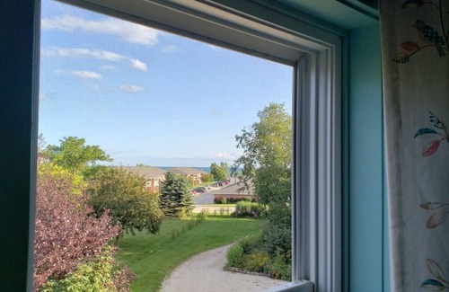 Our charming historic double silo granary farmhouse sits just above Lake Michigan, built in 1914! A truly unique gem in lovely and scenic, Kewaunee! Situated in a quiet neighborhood surrounded by beautiful mature trees with a park setting, Get a peek of Lake MI from your front & backyard, master bedroom & SE Silo!. 2 minute drive or a serene 15 minute walk down the hill to downtown (restaurants, shops, beach, lighthouse) & everything else Kewaunee has to offer! Two other waterfront parks ... even closer!