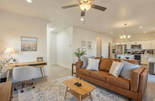 Imagine mornings sipping coffee in the peaceful living room, afternoons exploring local hiking trails or nearby parks, and evenings sharing meals in the fully stocked kitchen. This 4-bedroom retreat offers ample space for everyone, with cozy living areas and a workspace for staying productive. Spend your days adventuring at Utah Lake State Park, Saratoga Springs Marina, or Mountain Ranch Bike Park, then return to unwind in comfort.Whether you're here to connect, explore, or unwind, this home provides the perfect blend of comfort and adventure.