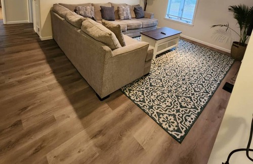 Newly designed and remodeled single family home with large screen cable TV, large kitchen w dinging room table that seats 6, fenced in private back yard w grill. Fully equipped kitchen w the latest cooking utensils.