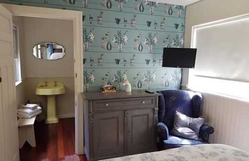 The stable is a self contained apartment with a Queen size bed adjacent to historical Horse Stables