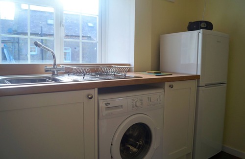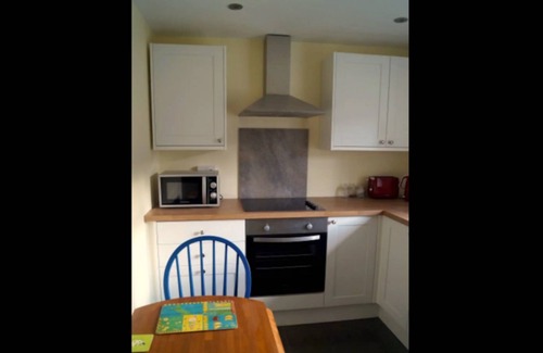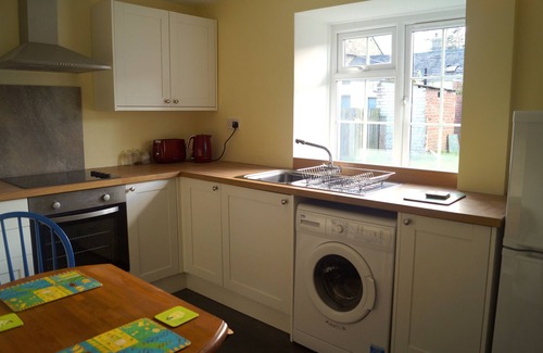 The kitchen is well equipped including a microwave, electric oven fridge freezer and washing machine. There is a small table which can seat 4. The bathroom is downstairs and it has a shower over the bath.
