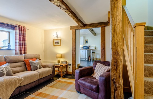 This attractive, semi-detached barn conversion, 3 miles from Llanfair Caereinion, sleeps four people in two bedrooms.