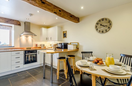 The Stables is a delightful, semi-detached holiday home set on the edge of working farmland, a few miles from the small town of Llafair Caerinion in Mid Wales. With two bedrooms, a double and an adults bunk bedroom, the property can sleep up to four people. There's also a shower room on the first floor, whilst on the ground floor is a kitchen with breakfast bar and dining area, and a sitting room with electric fire. Outside, there is a private patio garden with furniture and BBQ, and ample off road parking. The Stable is a delightful base for friends and families.