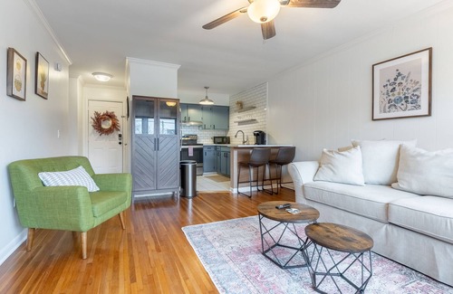 Fall in love with this cozy and quaint condo for your longterm stay in Nashville! Featuring beautiful hard wood floors, cozy furniture, and a striking kitchen with elegant subway tile backsplash and beautiful pops of blue cabinetry, there is so much to love about this darling space! With a convenient, central location, you'll have so many Nashville amenities right at your fingertips!