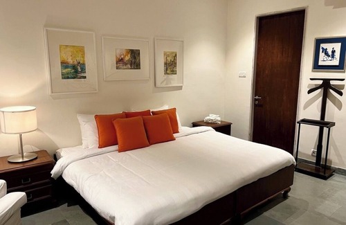 A sanctuary nestled on Rizwan Bagh Studios promising an unforgettable experience. A pet-friendly farmhouse style homestay with 3 tastefully furnished bedrooms and attached bathrooms – perfect for 6 guests. Warm interiors with a beautiful collection of art & antiquities, a patio garden attracting a variety of birds and if lucky one might spot a wild peacock or two. All amid a mango orchard, each tree steeped in history - planted by the Nawab himself. Breakfast here is a homemade treat!