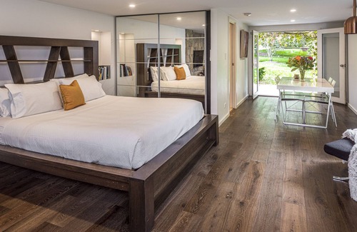 The self contained Studio has a separate front and back entrance with a furnished front veranda and a back veranda with floor to ceiling French Doors that open on 3 acres of manicured gardens.