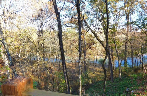 One of our couples cabins. Nice wrap around deck with a River View. Large Oval Jacuzzi tub inside. 1 Queen size bed. Bath with shower. An all open type cabin. Includes Complimentary Wine, Glasses, and Candles.