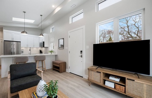 Our newly built 2-bed, 1-bath garden suite is a modern, cozy retreat nestled in a quiet, tree-lined Toronto neighbourhood. Featuring: