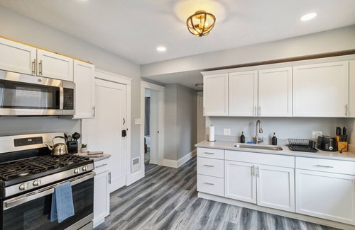 This cozy 1-bedroom, 1-bath second-floor apartment is perfect for two guests. Enjoy a spacious sunroom with comfortable seating, ideal for relaxing or working remotely. Located on a quiet street just minutes from downtown, with easy access to Lakewood’s restaurants and bars. A public park and pool are right down the street. Private side entrance included for added convenience.