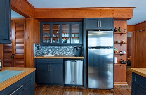 Welcome to a charming and timeless retreat on the shores of Lake Huron, where this old-school charm lakehouse awaits. Nestled among the trees, this three-bedroom, three-bathroom haven exudes classic elegance and warmth, offering a beautiful escape from the modern world. Throughout the lakehouse, you'll find nostalgic touches like antique light fixtures, vintage books, and family board games, and a well-stocked bookshelf encourages guests to unwind with a good read.