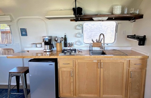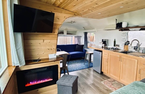 Perched on a bluff overlooking the Pacific Ocean and Nesika Beach, this beautifully reimagined Airstream has been expanded to create more space and stunning views. The open floor plan opens onto a private deck with a FIRE PIT, HOT TUB, and OUTDOOR SHOWER, perfect for watching sunsets and stargazing.