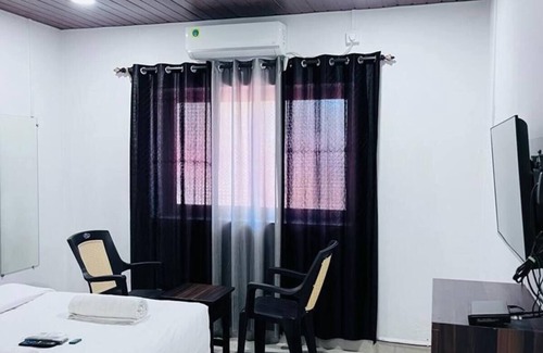 We provide with TV, Geyser, AC, WiFi Queen bed, toiletries. 24 hours we will be at your service. We have private rooms which can accommodate 2-3 guests in each room. Breakfast and meals can be ordered. Our property is fully fenced, safe and secured. at the front there is a open space to relax or to play , the place is also being used as a free parking area.