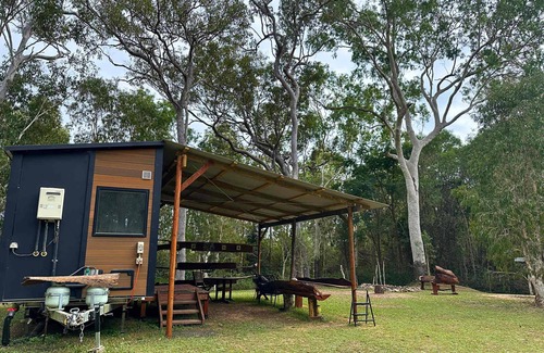 Tiny Ranch by Tiny Away, known as "Ochre Creek Ranch," is snugly nestled in a bushland paddock within the rural area of Koah, merely 13 minutes away from the stunning mountain retreat of Kuranda. Conveniently close to exciting attractions such as Kuranda Scenic Railway, Kuranda Koala Gardens, Barron Falls, and Crystal Cascades—promising endless adventure.