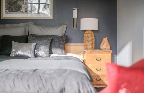 Connected to the living space, the bedroom boasts a generous king-sized bed with crisp-clean bedding. The ensuite features a walk-in shower and a bathtub, where you could sit and soak for hours.