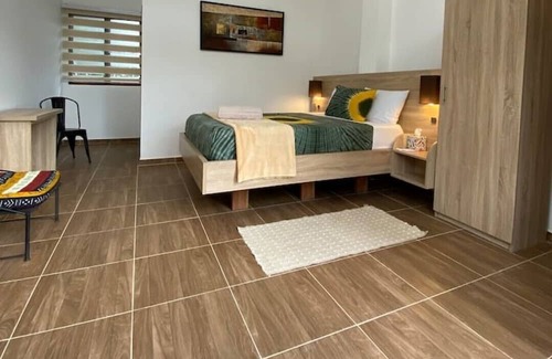 Kick back and relax in this calm, stylish space. A perfect location to breath-in the fresh and cool mountain air, away from the hustle and bustle of down-town Accra, 45 minutes drive south of us. Remote working? No problem. Want to live a higher-quality life in nature, away from the big city? No problem. You can have all the privacy you want, and still have access to the (knowledgable) hosts who live right next door if you need anything.