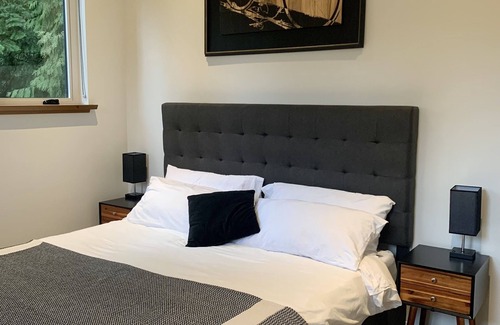 The Treehouse is new open concept suite with high ceilings and lots of light with a full kitchen with all the amenities. It has a large deck with a private jacuzzi hot tub over looking the forest. We are 15 minutes to Nelson and 30 minutes to Whitewater ski hill. 4X4 is a must Oct-Mar