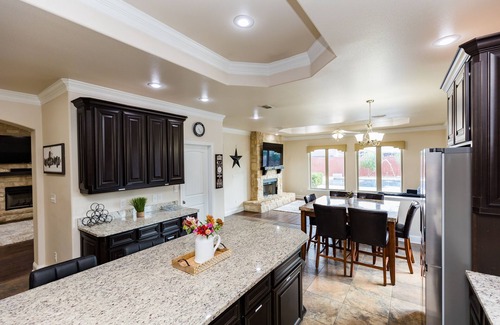 The ultimate resort ranch style pool home on nearly a half acre! is located in Lubbock. The ultimate resort ranch style pool home on nearly a half acre! provides accommodation, featuring Wellness Facilities, Fireplace/Heating, Barbecue/Outdoor Cooking, among other amenities. This House features Wellness Facilities, Fireplace/Heating, Barbecue/Outdoor Cooking, to make your stay a comfortable one.
