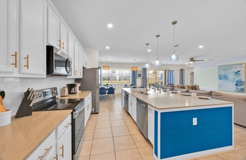 Consider this house your home away from home while you visit Kissimmee. With 15 bedrooms including 11 king beds and 11 twin beds, this property offers tremendous space for large groups. The 16 bathrooms, all equipped with showers, ensure that guests have plenty of room to freshen up. Whether you're enjoying the soothing ambiance of the interior or exploring the amazing surroundings, this property is perfect for your getaway. We look forward to hosting you at our Enchanting Accommodations