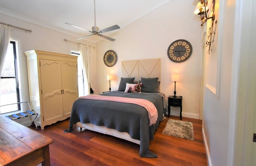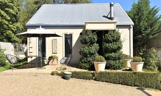 Enjoy a romantic stay in this beautifully furnished villa. This one bedroomed villa has all you need with a well equiped kitchenette, king sized bed and luxurious bathroom with spa. All year comfort with a cosy wood burning stove for those chilli days and air conditioning for the summer. Located in a quiet location within walking distance of historic Beechworth.