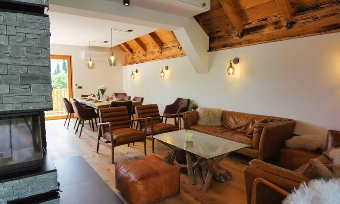 Escape to The Villa Bled, a luxurious alpine retreat on the edge of a tranquil forest. 3 bedrooms with private bathrooms and balconies accommodate up to 6 guests. Two fully equipped kitchens for culinary delights. Relax on the terrace, enjoy two spacious living rooms. Unwind in the private garden with a hot tub. Just a 10-minute walk to Lake Bled. Experience indulgence and nature's beauty at The Villa Bled.