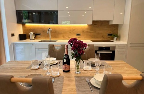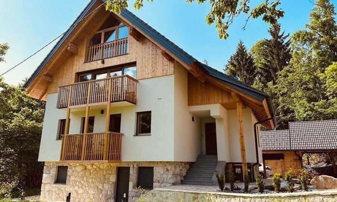 Escape to The Villa Bled, a luxurious alpine retreat on the edge of a tranquil forest. 2 bedroom apartment with private bathrooms and balconies accommodate up to 6 guests. Fully equipped kitchen for culinary delights. Relax on the terrace, enjoy two spacious living room. Unwind in the private garden. Just a 10-minute walk to Lake Bled. Experience indulgence and nature's beauty at The Villa Bled.