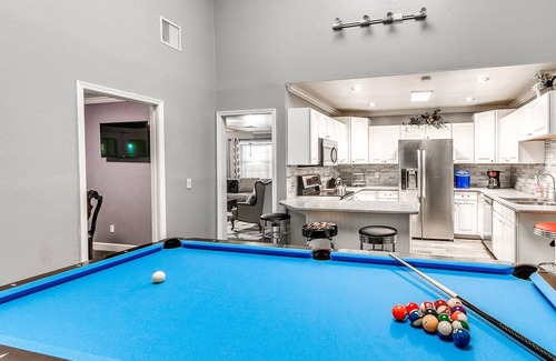 - Be entertained with multiple televisions, a game room, and a recreational pool table.