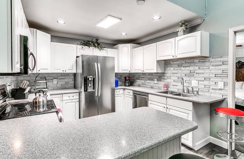 - Refrigerator, dishwasher, microwave, stove, oven, and an array of necessary utensils.