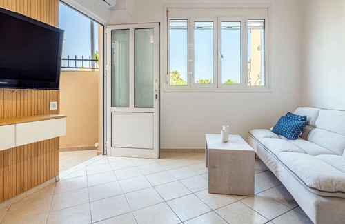 Welcome to your cozy retreat in the heart of Heraklion. Located on the ground floor of a quiet building just minutes from the city center, this thoughtfully designed 30sqm apartment is ideal for couples, solo travelers, or a small family looking to explore Crete’s vibrant capital.