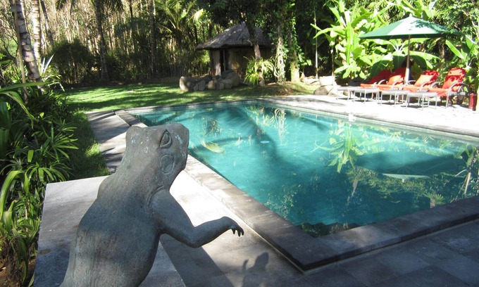The Wantilan is known as one of the most beautiful examples of nowadays Balinese architecture. Settled down in a huge tropical garden (2700 m2) the Wantilan (400 m2) offers you an unforgettable stay with unforgettable staff service. In this garden: swimming pool under huge coconut trees 5 x 11 m, Jacuzzi / TV room 2 x 2 m in private inner garden 7 x 7 m, outstanding music collection and library. Large and well-equipped bed and bathrooms, see pictures.
