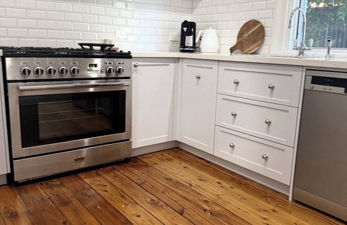 The stylish kitchen has everything you need, the hero of the kitchen is the huge falcon oven/stove combo.