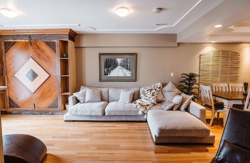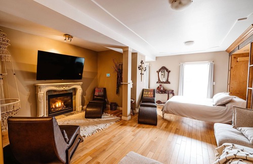 Treat yourself to a spacious one-bedroom executive suite located on the main floor. Lay back and lounge around a cozy fireplace and sitting area. Perfect for a romantic getaway or a group of four. Children welcome.