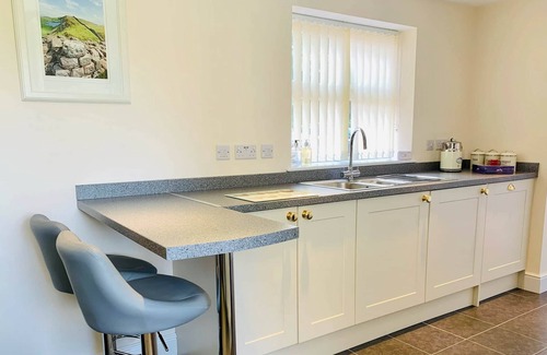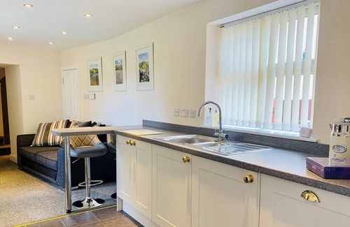 One bedroom is located on the ground floor and upstairs is another large bedroom with king-size bed and en-suite family bathroom containing a shower. The room is tastefully decorated with a dresser and bedside tables for a minimalistic look and there are views over the South Tynedale Trail and the surrounds countryside from the window.