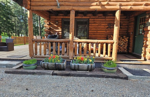 The cabin offers a large wrap around deck with a propane grill. As soon as the weather permits, the deck is equipped with table and chairs, small bar, and a putting green for those that want who want to practice their putting!