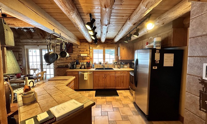 The downstairs offers a second full bath with a large shower, a second bedroom with a brass double bed and premium mattress and bedding, sliding doors to the outside deck, washer and dryer, an office for those that just cannot seem to “totally get away” complete with internet service. There are several books to read whether that be a good fiction book or a book that discusses the various activities to do in the area. There is an open area with kitchen, dining and lounge area with a big screen Smart TV complete with Blu Ray, Direct TV and Surround-Sound. In the winter there is a wood fire stove to warm the heart as well as the body! Wood is provided with ample supply so you won’t need to bring wood! The fully equipped kitchen with refrigerator, stove/oven, microwave, coffee maker, tea pot including a variety of coffees and teas, and all the cooking utensils plus basic spices and oils you need allow you to truly make this your home away from home, whether that be for 2 days, the weekend or a week. TV trays are available for when you wish to dine in front of that favorite movie you’ve always wanted to watch. Jigsaw puzzles, games, Music CDs and hundreds of movies await your use while you are there for those evenings when you just want to curl up on the couch.
