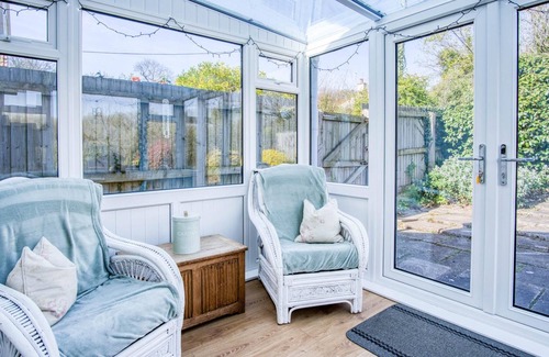 Step inside and be welcomed by a beautifully appointed traditional living space, complete with a flat-screen TV, complimentary Wi-Fi, and plush furnishings. Dine in comfort at the dining table or unwind in the delightful conservatory, where you can bask in the sunlight or enjoy the soothing sound of the rain on the roof.