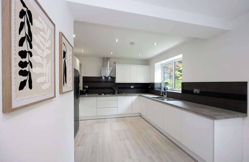 Modern and stylish 2/3 bed home in the heart of Wilmslow, Cheshire. Sleeps up to 7 guests comfortably. Features a spacious open plan kitchen and dining area with modern appliances perfect for entertaining or relaxing with family and friends. Enjoy the convenience of private parking and a peaceful location just a short stroll from Wilmslow village, with its shops, cafes, and local charm. Ideal for both short and extended stays.