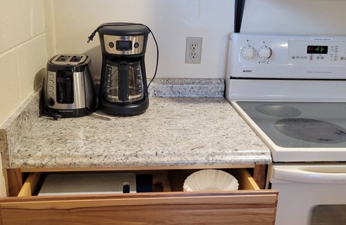 Welcome to The Wolf's Den! Additional information, reservations, discounts, and units are available for VRBO viewers on our website SWEETDREAMSOVERLOOK. VRBO has made some updates to their software and are still working on notifications. If possible, please reserve through the website to avoid confusing communications that are not feeding properly from my website. The suite includes a separate king bedroom, private sauna, shower only (no tub), open concept kitchen/living room with 2 sofa sleepers that fold down into a full-size bed and a small twin-size bed, child-size, and a smart TV with Roku and DVD Player(no cable). Dining for 5. Kitchen has a microwave, stove, oven, and refrigerator. There are lake views from the windows and the deck, however, there is no direct lake access. It is similar in style to an apartment as it is located in the lower level of a single-family home and has a private entrance. This lovely suite was recently updated and remodeled and you'll certainly enjoy its charm, cleanliness, and convenience to amenities the North Shore and Grand Marais have to offer. The upper level is occupied by the owner who is on hand for any questions or requests. The kitchen is stocked with dishes, pots, pans, mixing bowls, casserole dish, coffee maker, toaster, utensils, and more. Just let us know if you need something that isn't provided! E-bikes are available to rent this summer!