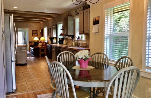 This home is tastefully decorated to convey an authentic western experience. Our home features a spacious open beam living room, leather furniture, and a wood stove for those cooler evenings, as well as 2 A.C. units to keep guest comfortable in warmer weather. The kitchen is open and fully stocked with all the necessary utensils to accommodate your cooking needs. Enjoy your morning coffee in the cheery four seasons sunroom before heading out to explore all that Cody and Yellowstone have to offer.