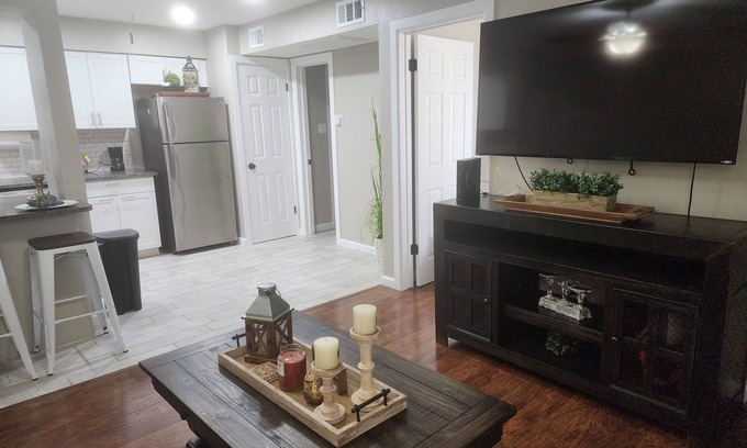This apartment has a very calm environment, there are also many restaurants with different styles of food and a gym close by... There is an airport 20 minutes away from this apartment, Downtown Dallas is also 20 minutes away from this apartment. I've decorated this apartment in neutral colors to give it a calm and peaceful feeling...